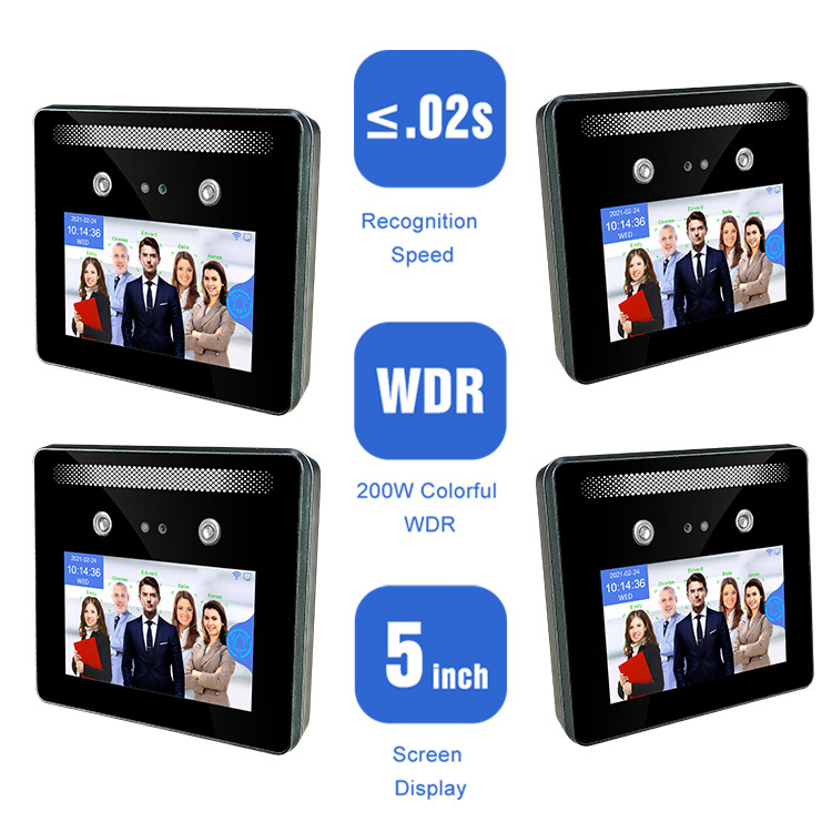 TM-AI 05 5 inç ips dokunmatik yatay dokunmatik ekrana sahip olup, çalışan zaman saati için çok uygundur, fabrikada olduğu gibi, kısa sürede birçok kişi saat aşımına uğrar, aynı anda 5 kişiyi tanımak zaman kazandırır.Hastane, fabrika, binalar, okullarda yaygın olarak kullanılmaktadır.insanların sağlığını korumak için temasa ve dokunmaya gerek yok